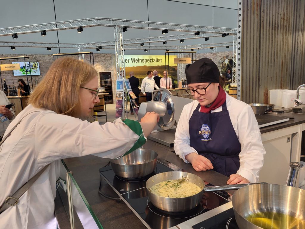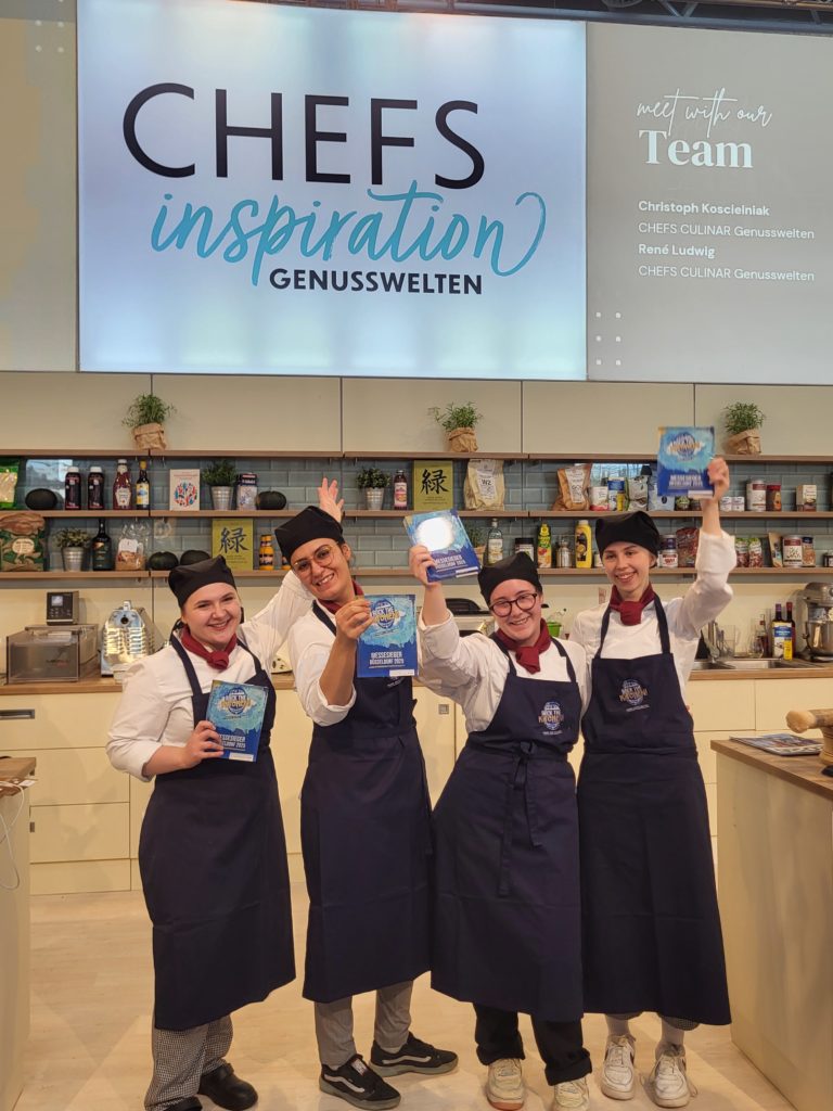 Vier Koch-Auszubildende der Eduard-Stieler-Schule Mariia Schulkovska (vom Gasthof Altes Casino in Petersberg) Züleyha Okutan (vom Klinikum Fulda in Fulda) Laura-Sophie Brehl (vom Gasthof Rhönblick in Wissels) sowie Leonie Dorn vom Seniorenzentrum in Gersfeldhatten sich in Leipzig qualifiziert traten nun auf der Fachmesse von Chefs-Culinar in Düsseldorf zur zweiten Etappe des Young Chefs Battle an. Allerdings sprang Laura Veth (vom Klinikum Fulda in Fulda als kurzfristige Vertretung) für Laura-Sophie Brehl ein.